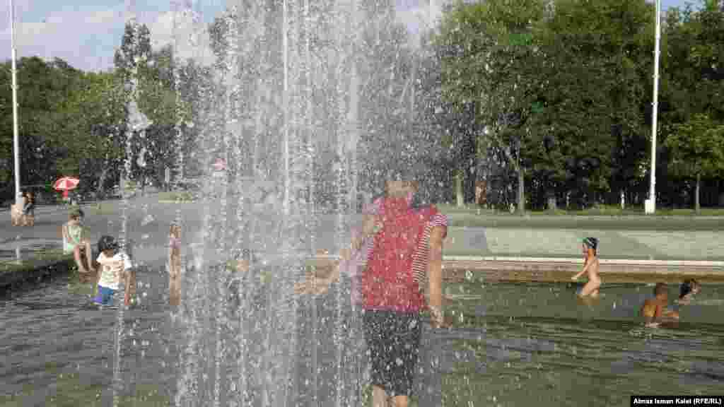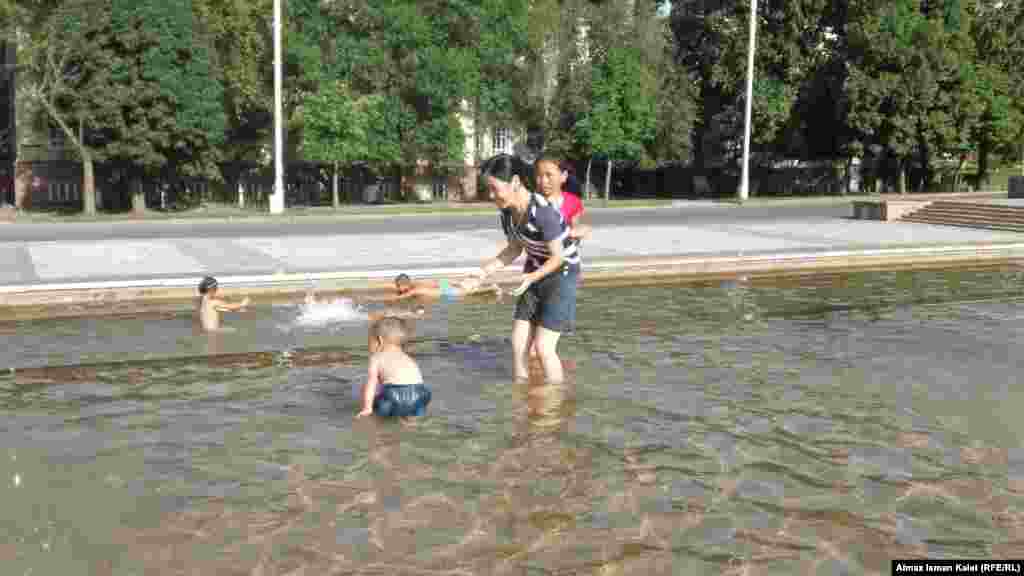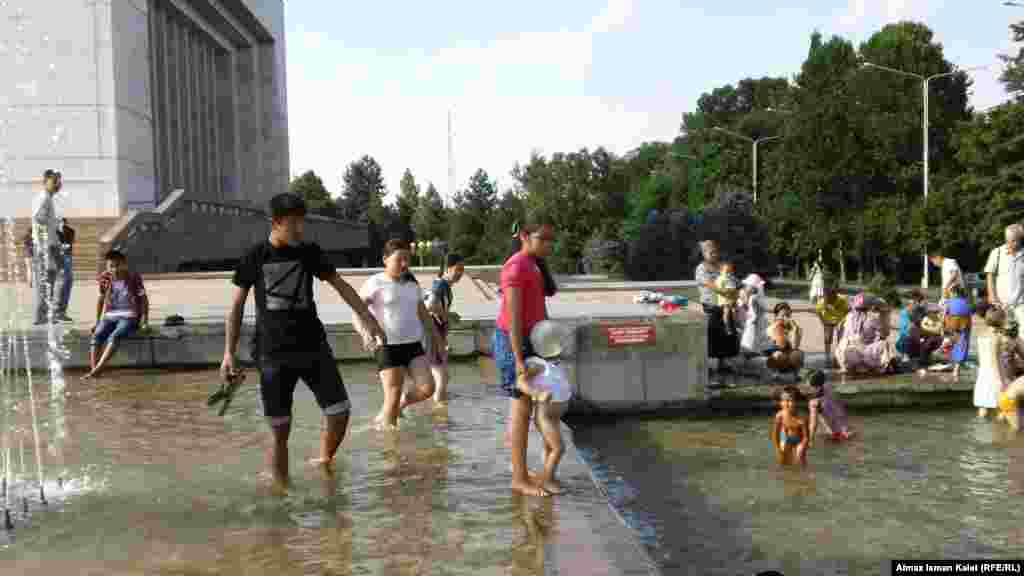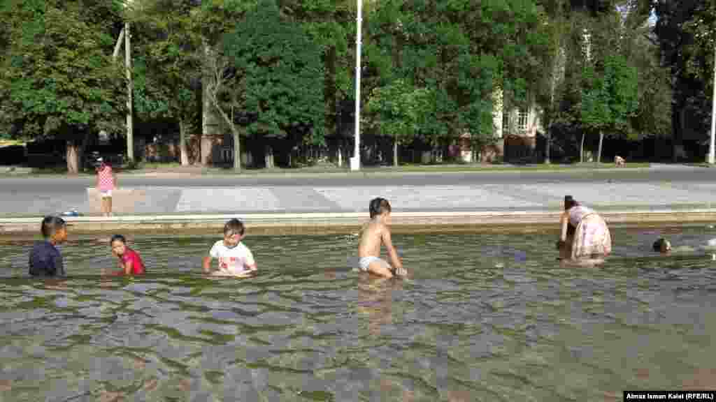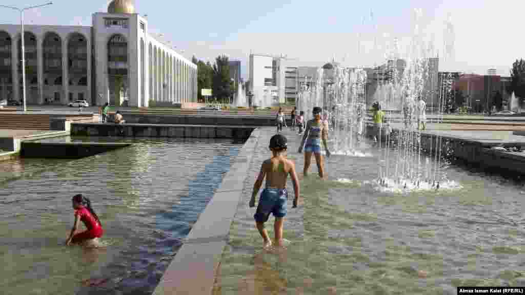 Несмотря на запрет купаться в фонтанах на центральной площади в Бишкеке, дети с большим удовольствием плескаются в прохладной воде фонтанов, спасаясь от жары в летнее время. "Азаттык", Кыргызская служба РСЕ/РС