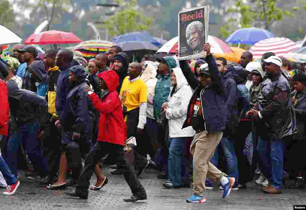 Южная Африка прощается с Нельсоном Манделой. Траур в стране носит специфический характер: люди танцуют и поют прямо на улицах и площадях, прославляя Мадибу – таково клановое имя Манделы на языке его народа коса, одного из населяющих юг Африки. "Азаттык", Кыргызская служба РСЕ/РС