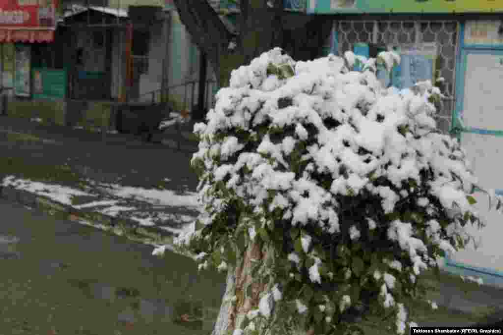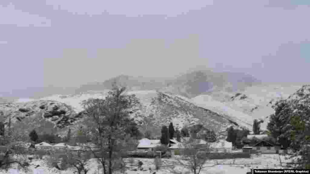 В некоторых районах Нарынской области выпал снег. Местами толщина снежного покрова достигает 5 сантиметров.