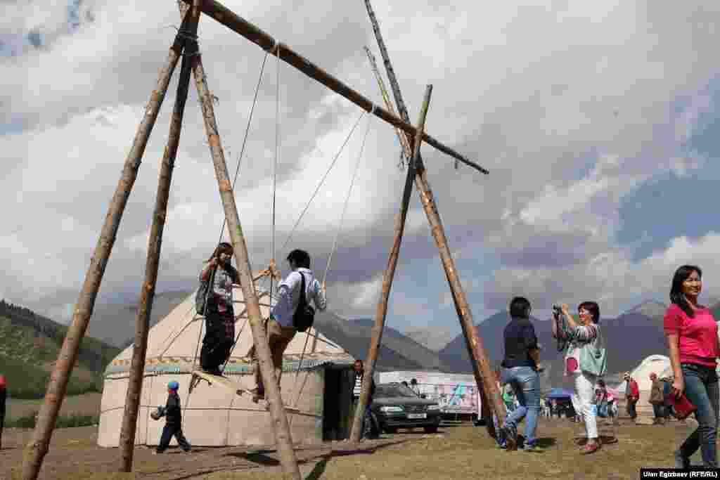 В рамках проведения Всемирных игр кочевников на пастбище Кырчын действует этногородок.
