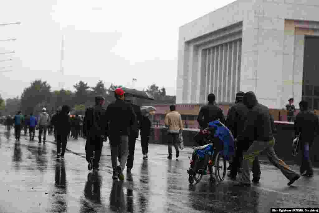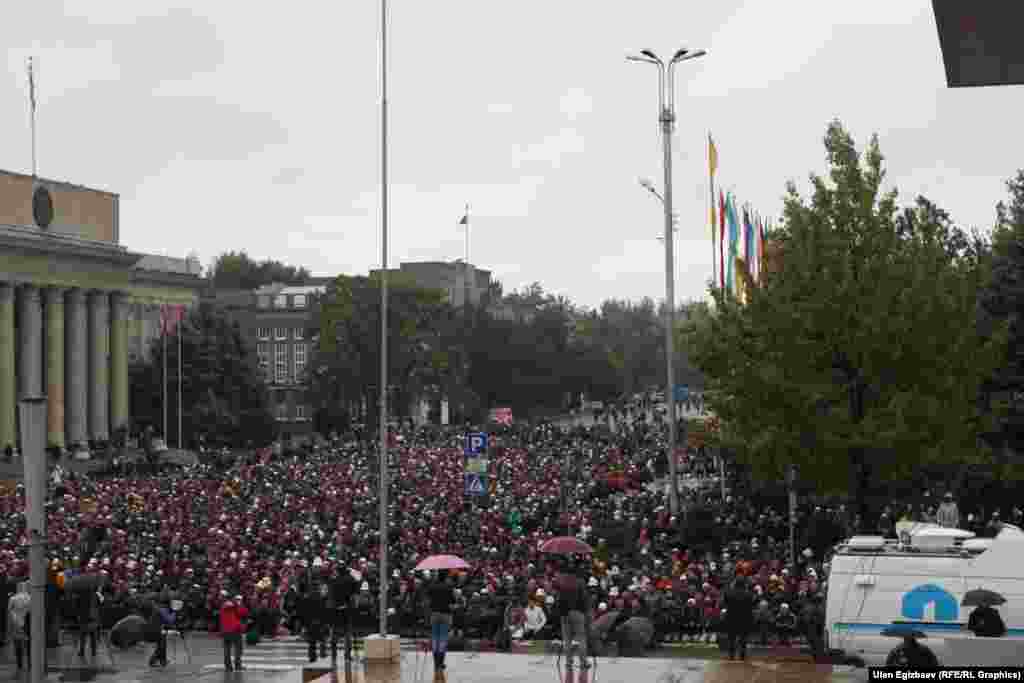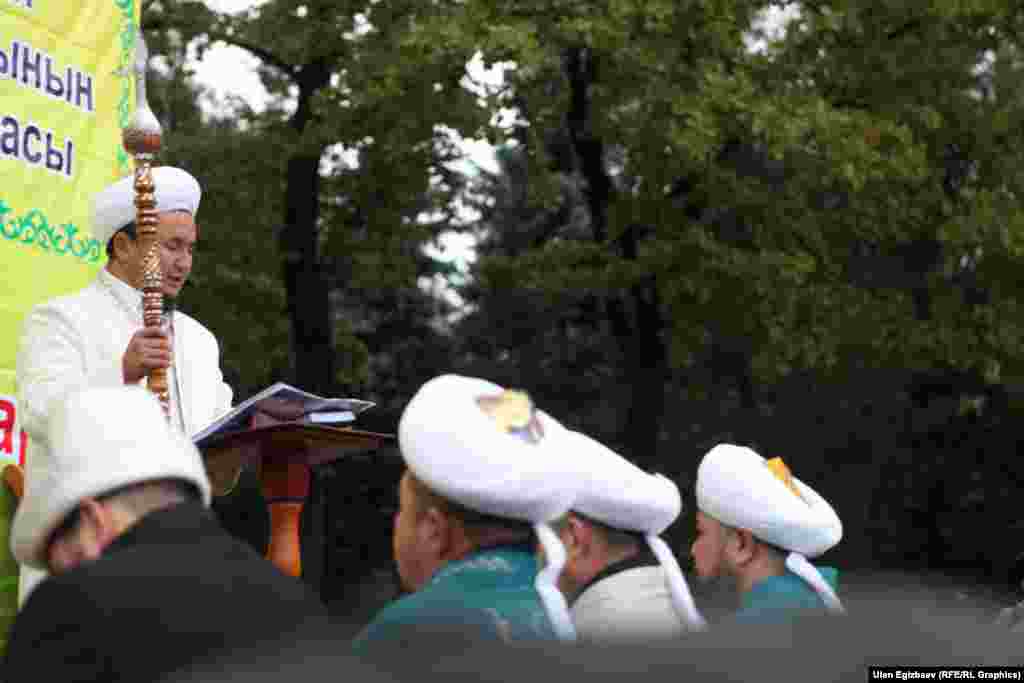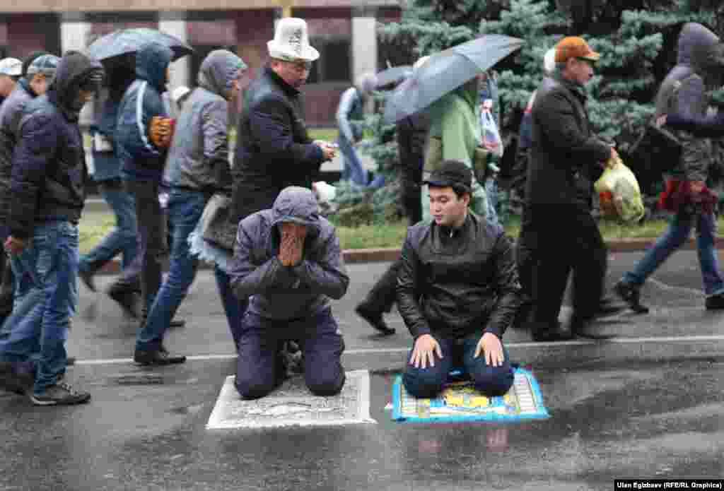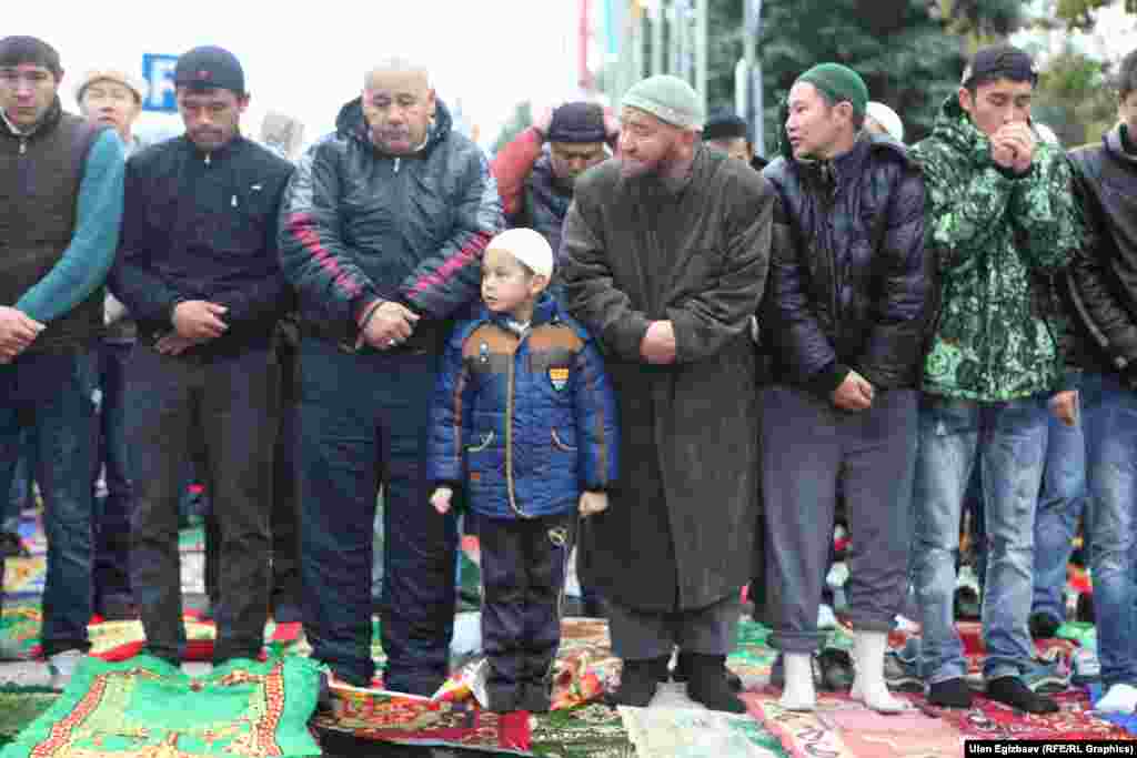 В Бишкеке с утра прошел праздничный айт-намаз. Несмотря на дождь на старую площадь пришло много людей. С поздравительной речью выступили заместитель муфтия Равшан ажы Эратов и спикер Жогорку Кенеша Асылбек Джээнбеков.