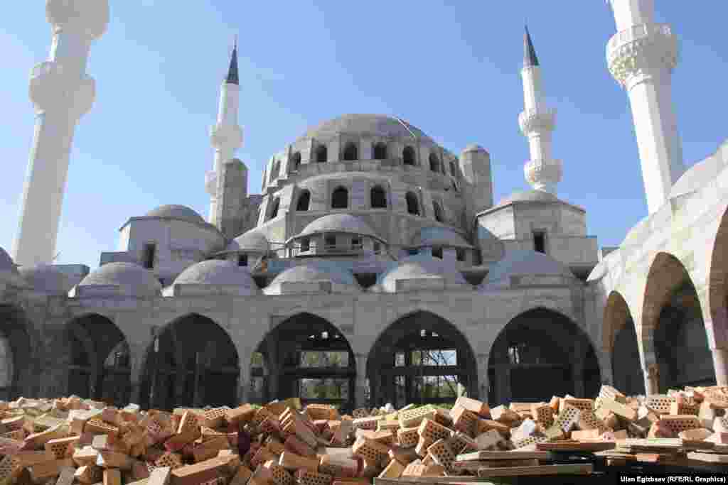 Строительство новой центральной мечети на месте бывшего кинотеатра «Иссык-Куль» планируется завершить через два года. До сегодняшнего дня возведены стены и башни. Теперь начнется внутренняя отделка.