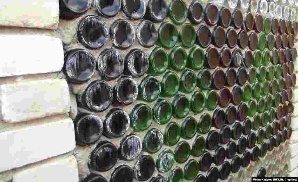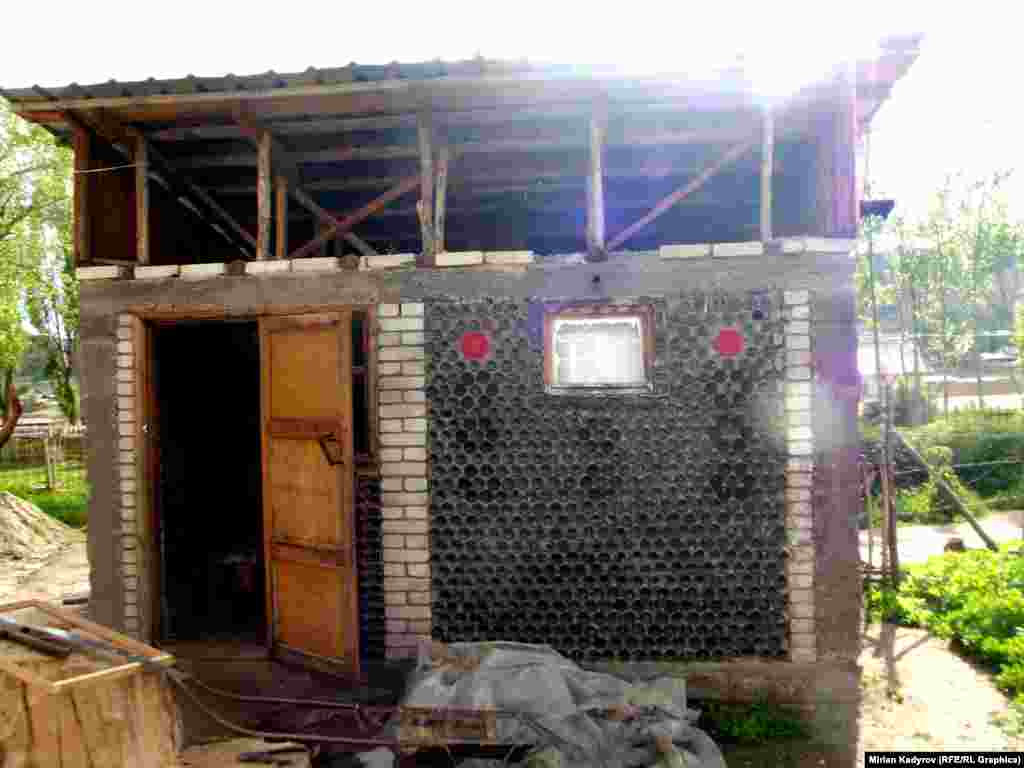 Житель села Оттука Нарынского района Кубан Жунусов 5 лет назад, собрав более 4 тысяч стеклянных бутылок, за два месяца построил баню. На возведение стен понадобилось 3,7 тысяч бутылок, для пола 500. В качестве строительных смесей использовались традиционные стройматериалы - цемент, глина и песок.