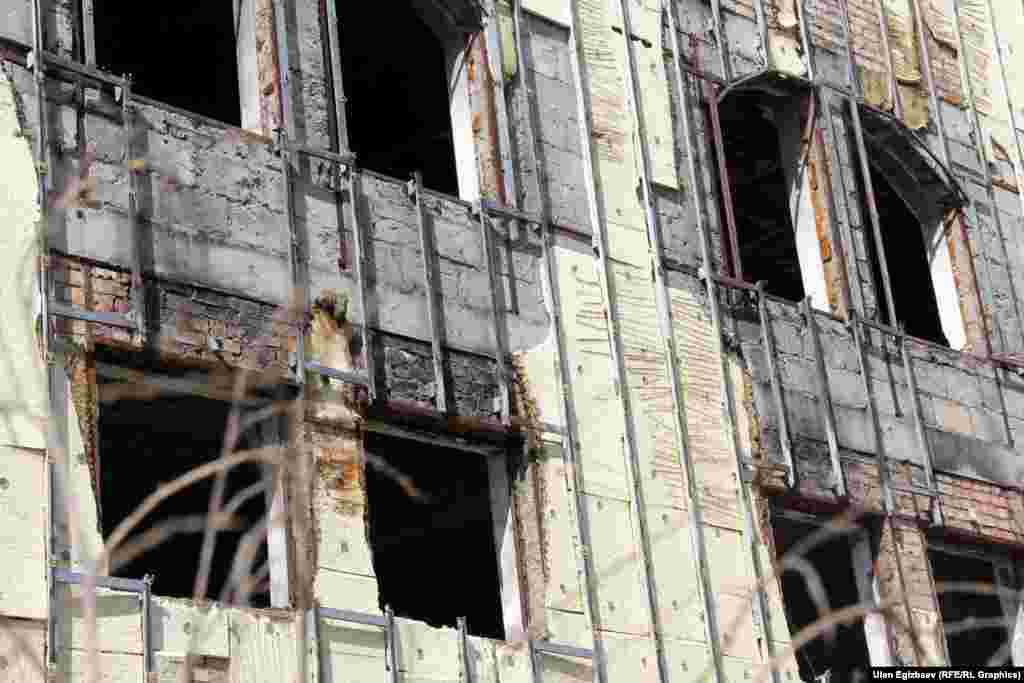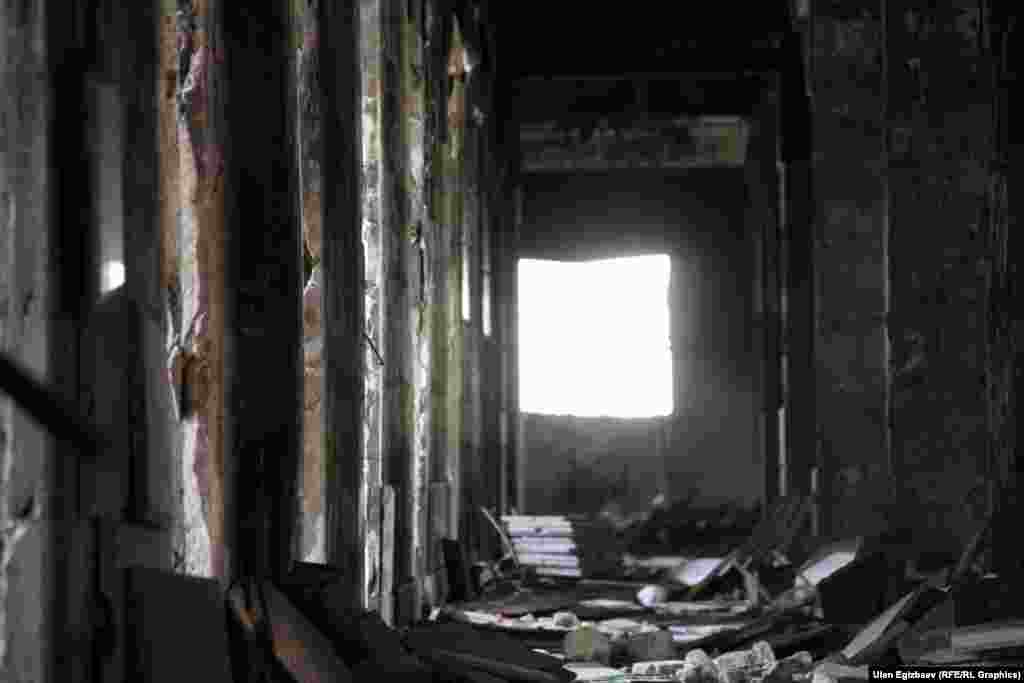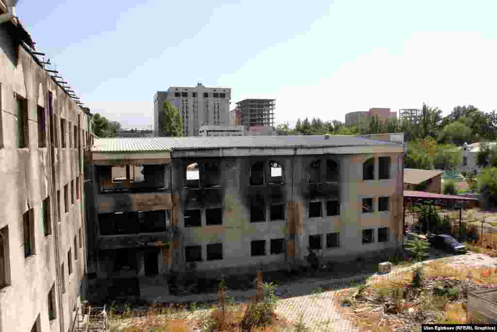 Бывшее здание Генеральной прокуратуры республики полностью сгорело в результате апрельских событий 2010 года. С тех прошло пять лет, однако, здание все еще без должного присмотра, кабинеты прокуроров превратились в свалку мусора. В настоящее время в углу здания приютилась семья Бакыта Чегирткеева.