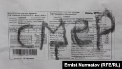 На воротах дома частного предпринимателя Жайнагуль Турдуевой в городе Оше 12 августа неизвестные оставили записку со словом «смерть». Запись сделана на обороте квитанции об оплате за газ. Об этом «Азаттыку» сообщила Турдуева.
