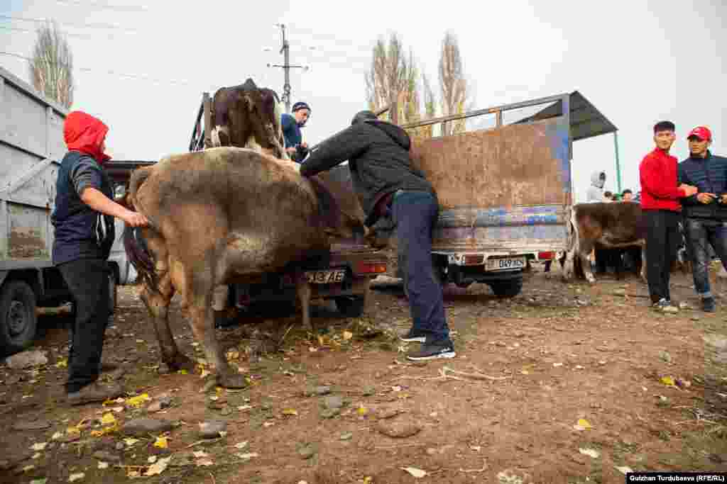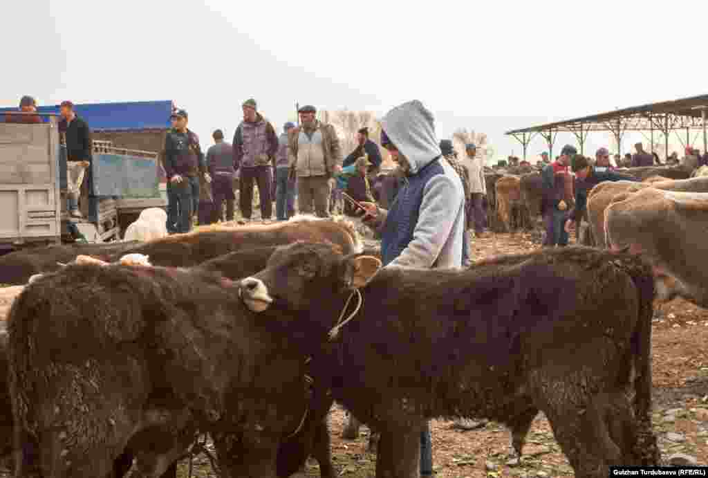 На скотных рынках Кыргызстана осенью торговля идет особенно активно, ведь животноводы вернулись с пастбищ, а тут в разгаре сезон торжеств. К примеру, на рынке в Кара-Балте цена на коз и овец начинается с трех тысяч сомов, коров - с 55 тысяч сомов. Самые дорогие - лошади, их стоимость доходит до 200 тысяч сомов.