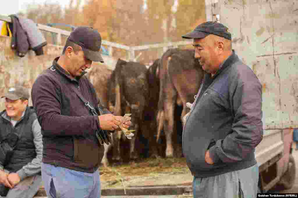 На скотных рынках Кыргызстана осенью торговля идет особенно активно, ведь животноводы вернулись с пастбищ, а тут в разгаре сезон торжеств. К примеру, на рынке в Кара-Балте цена на коз и овец начинается с трех тысяч сомов, коров - с 55 тысяч сомов. Самые дорогие - лошади, их стоимость доходит до 200 тысяч сомов.