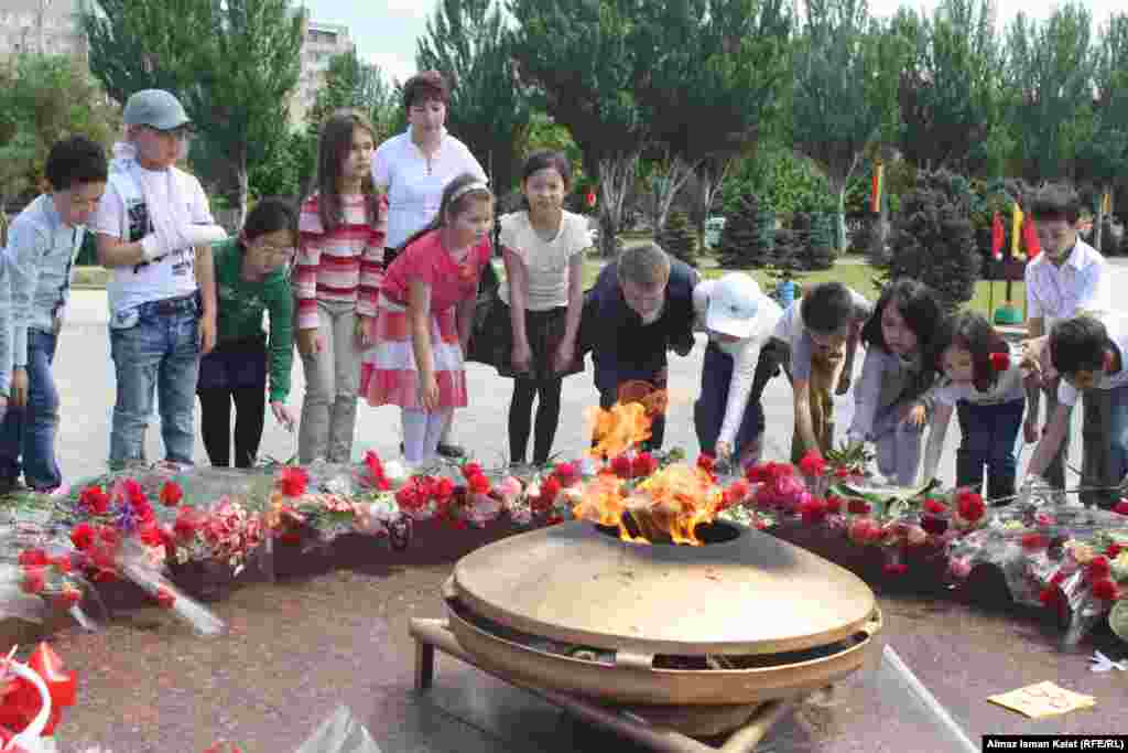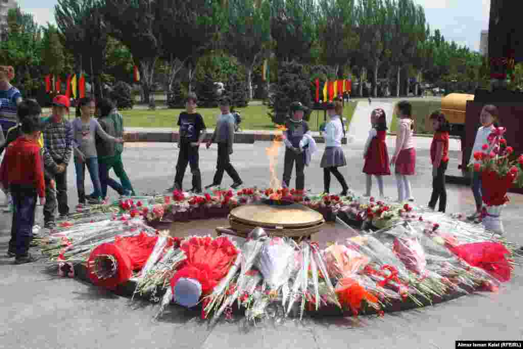 В Бишкеке, ученики младших классов одной из городских школ почтили память павших во Второй мировой войне кыргызстанцев. "Азаттык", Кыргызская служба РСЕ/РС