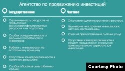 - увеличить финансирование АПИ из госбюджета - до $1-1,5 млн. в год, установить ключевые показатели эффективности перед правлением АПИ, провести обучение всех сотрудников через успешные АПИ зарубежных стран (Турция, Чехия и Германия) при поддержке Всемирного банка, в том числе тех, которые будут работать при дипломатических представительствах в указанных выше девяти странах.