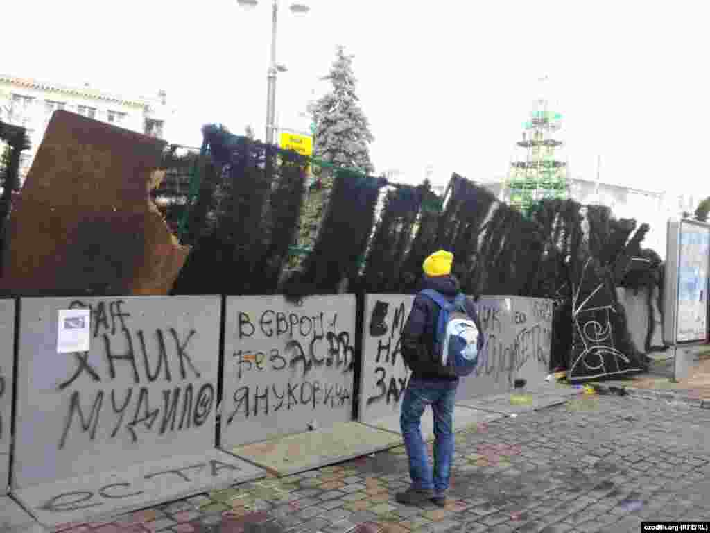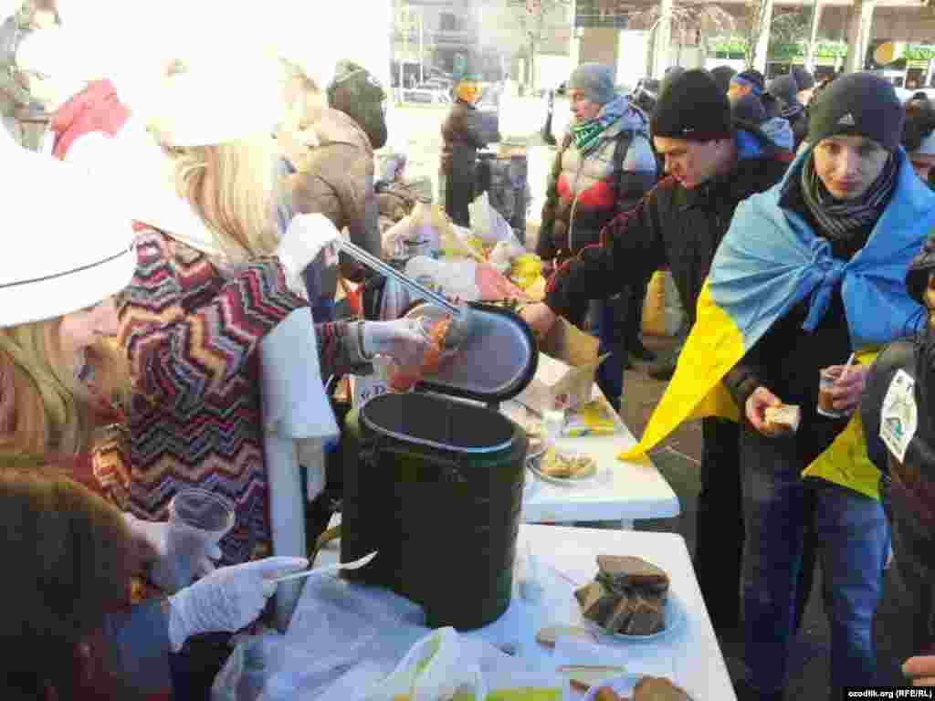 "Евромайдану нужны волонтеры, еда, одежда, лекарства, бытовые вещи. Об этом сообщается в Facebook. В частности, требуются мужчины в охрану, "готовые стоять по 8-12 часов", особенно ночью за баррикадами. Еда: готовая, либо порезанные сыр, колбаса, хлеб, чай, кофе, сахар в кубиках или порционных пакетах, вода обычная и минеральная газированная. Будут признательны за консервы, проверенные временем, особенно за тушёнку". Такие сообщения оставляют в социальных сетях волонтеры с Евромайдана в Киеве. Фотографии корресподента Узбекской службы РСЕ/РС из Киева Толкуна Умаралиева.