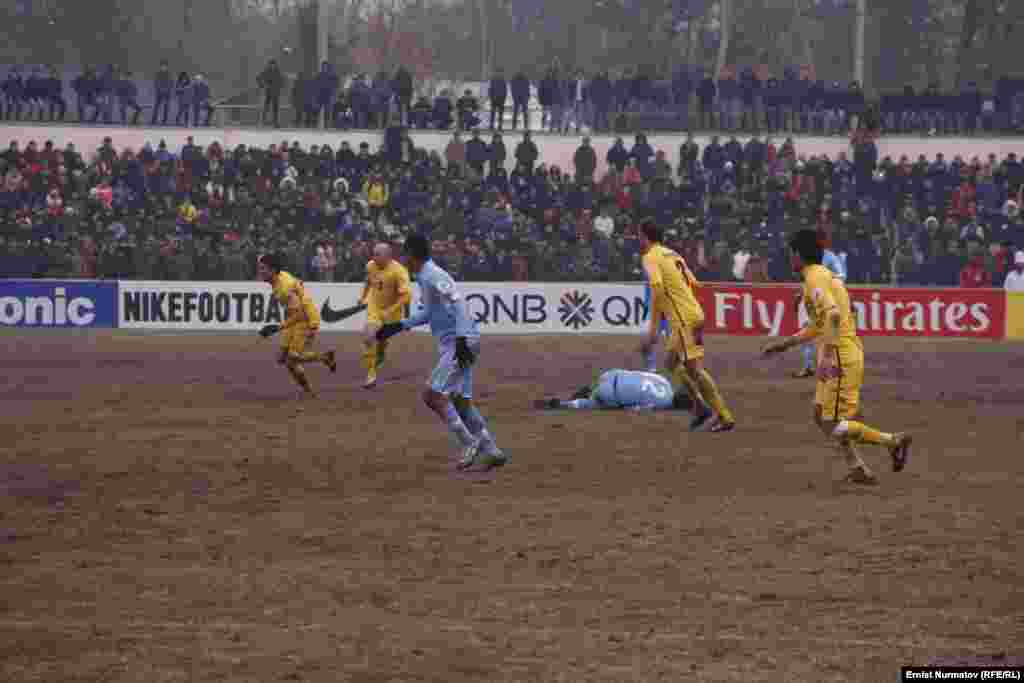 Футбольный матч на Кубок Азиатской конфедерации футбола между командами «Алай» (Кыргызстан) и «Аль-Риффа» (Бахрейн) закончился ничьей. По разным оценкам, на стадионе города Оша 26 февраля собралось около 15 тысяч болельщиков. АФК по итогам встречи лучшим игроком этого матча признала нападающего «Алая» Алмаза Мирзалиева. Напомним, ошская команда является чемпионом Кыргызстана 2013 года. Согласно правилам АФК, ошский «Алай» теперь должен провести матчи с командами «Арбил» (Ирак) и «Шабаб Аль-Ордон» (Иордания). Таким образом, в групповых матчах «Алай» проведет всего шесть игр, три из которых - на полях соперников.