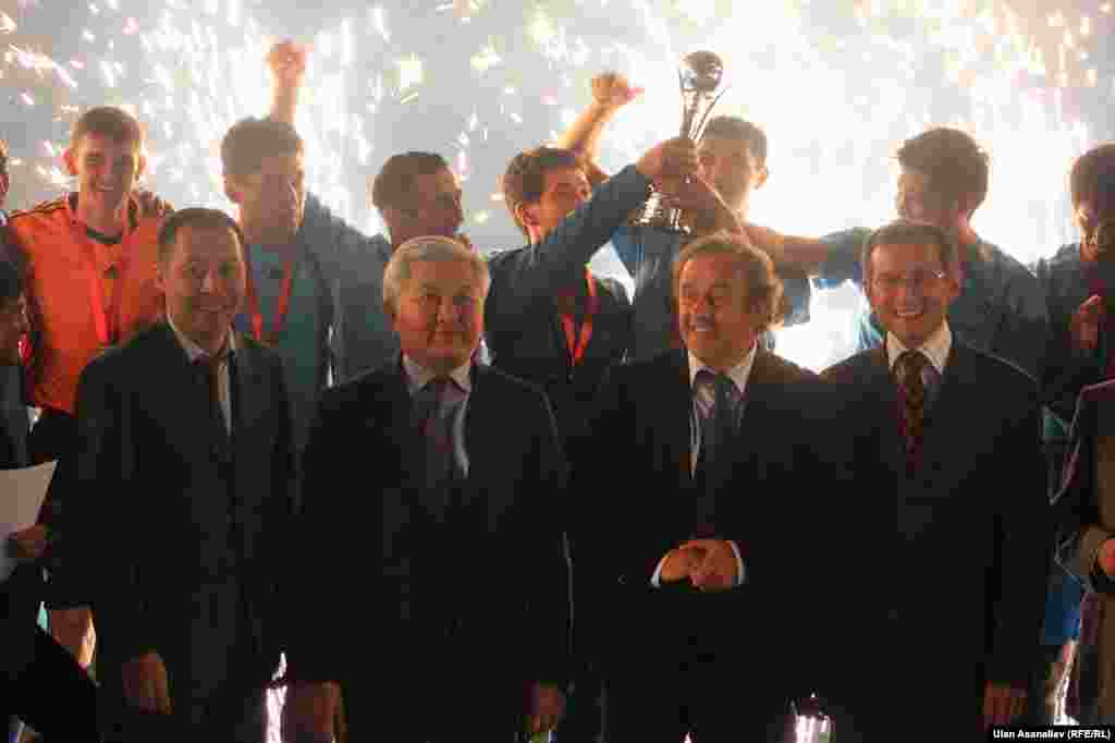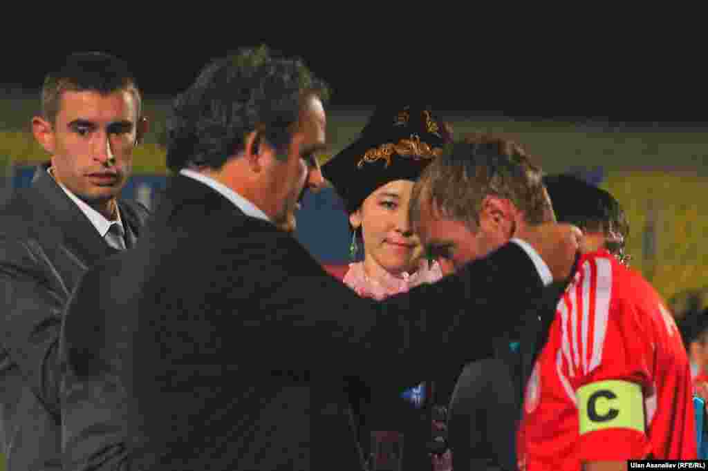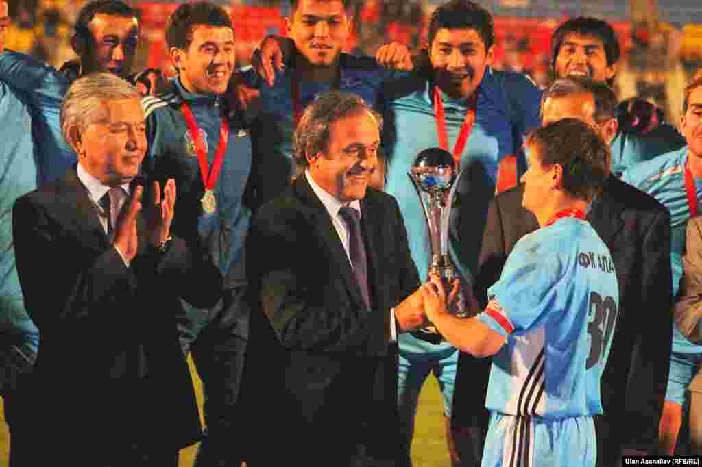 Футбольный матч между командами «Алай» (Ош) и «Алга» (Бишкек), который состоялся 9 октября в Бишкеке, закончился со счетом 7:5. Победу одержали ошане. Первый «Кубок Легенды» победителям вручил лично президент УЕФА, легендарный в прошлом французский футболист Мишель Платини. Фотогалерею подготовили Алмас Ысман, Улан Асаналиев, "Азаттык", Кыргызская служба РСЕ\РС